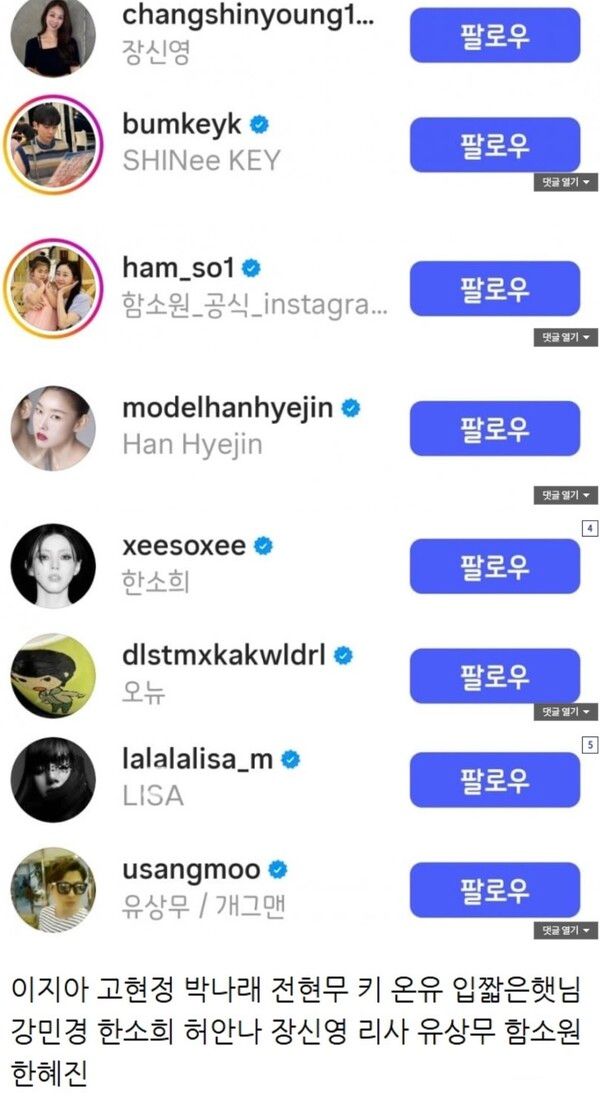 함께 주사 이모 인스타를 팔로우 하고 있는 연예인들 리스트도 함께 화제가 되고 있다.