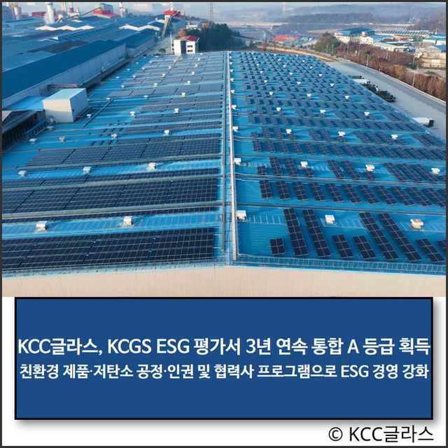 KCC글라스(344820)가 한국ESG기준원(이하 KCGS)이 발표한 '2025년 KCGS ESG평가 및 등급'에서 3년 연속으로 통합 A 등급을 받았다.