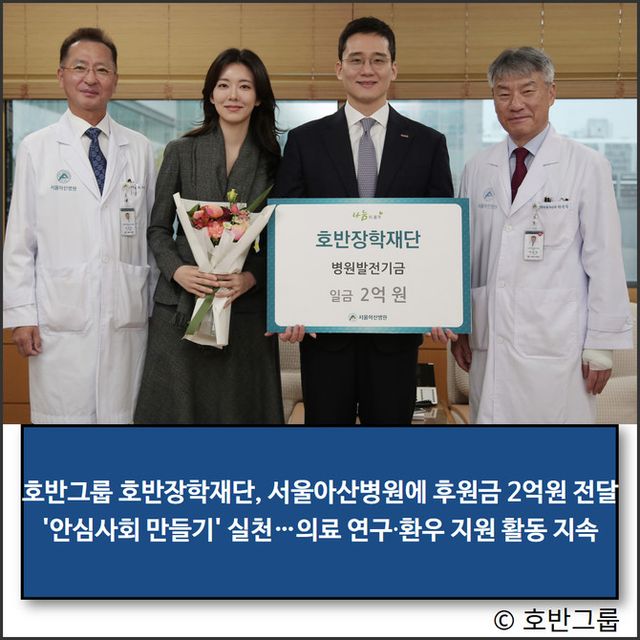 김대헌 호반그룹 기획총괄사장은 "이번 후원이 의료 연구 환경 개선과 우수 의료인재 양성에 실질적인 도움이 되기를 바란다"며 앞으로도 의료와 복지 등 다양한 분야에서 사회적 안전망을 강화하는 지원을 지속해 나가겠다"고 말했다.