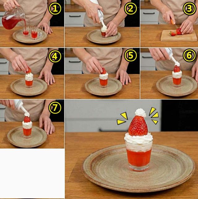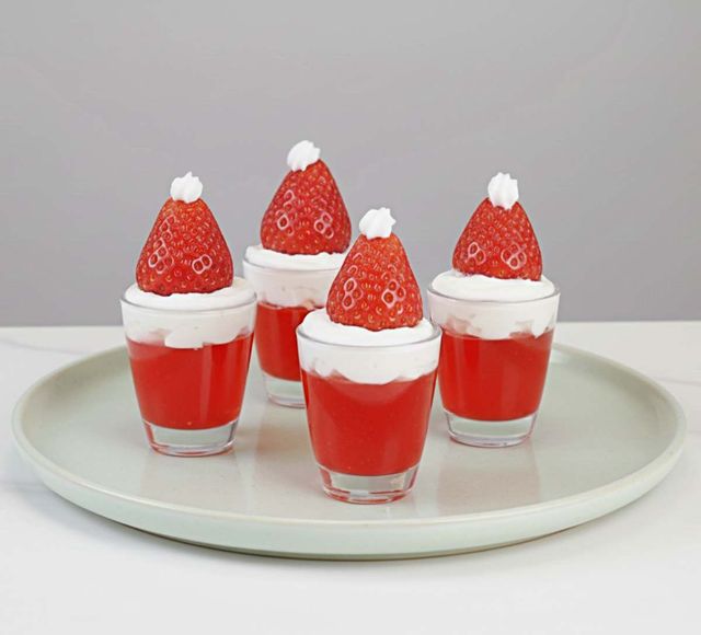 만드는 방식은 어렵지 않다. 먼저 말랑한 딸기 맛 젤리를 소주잔에 붓고 냉장고에 넣어 굳힌다. 젤리가 완전히 굳은 뒤에는 위에 휘핑크림을 올린다. 딸기는 꼭지 쪽을 살짝 잘라 휘핑크림 위에 얹고, 마지막으로 딸기 윗부분에 휘핑크림을 한 점 더 올리면 끝이다. 소주잔 위에 앉은 작은 산타 모자 모양이 자연스럽게 완성된다.