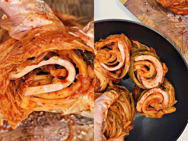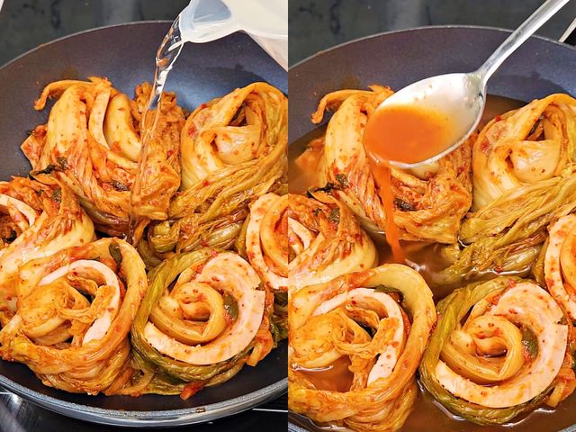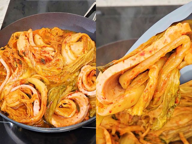 김치가 부드럽게 풀어지면서 속까지 촉촉해져요.
