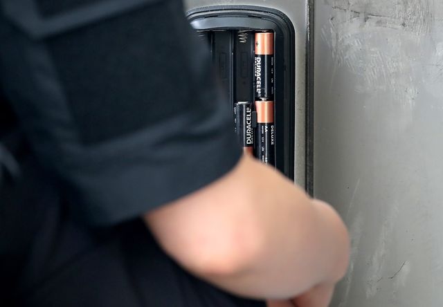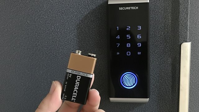 9V 건전지로 문을 연 뒤에는 반드시 실내측 커버를 열어 내부 배터리를 교체해야 한다. 대부분의 도어락은 AA 건전지 4~8개를 사용하는데, 전부 새 알카라인 건전지로 바꿔야 한다.