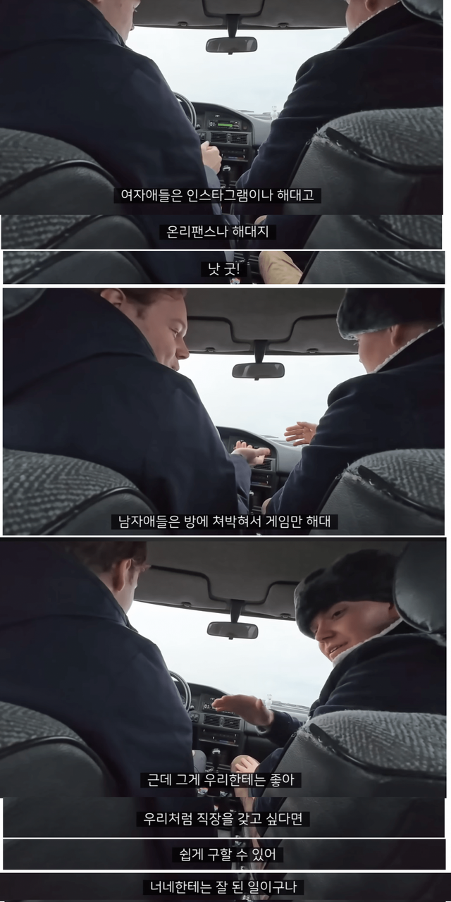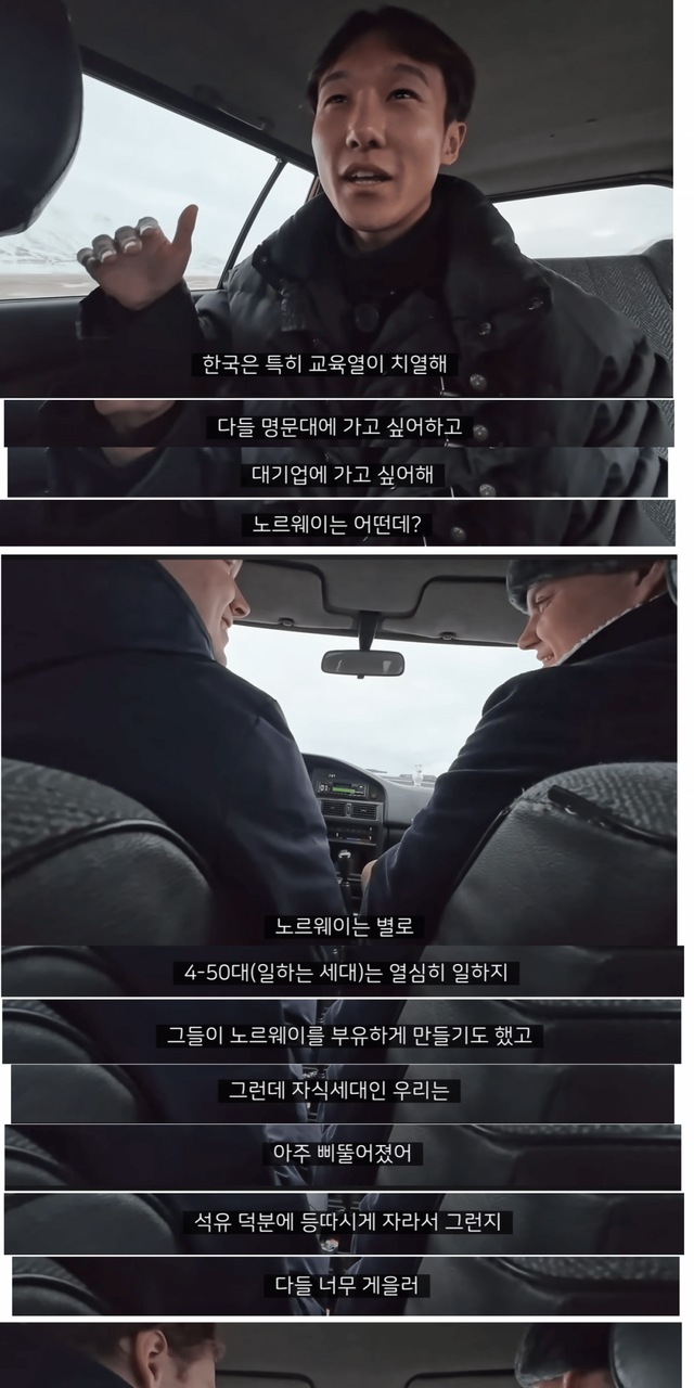 한국 유튜버가 북극여행가서 노르웨이 청년(22세, 23세) 차 히치하이킹해서 이동하고 있는 상황
