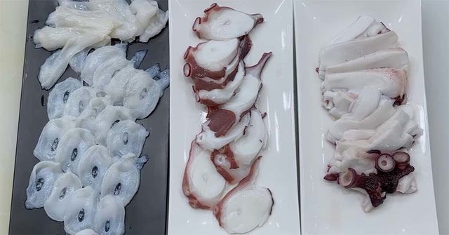 왼쪽부터 피문어 회, 피문어 숙회, 돌문어 숙회. / '일타쿠마' 유튜브 채널