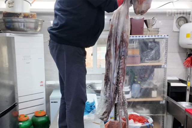 '일반 문어의 7배! 괴물 문어 해체쇼!'란 제목의 영상이 19일 유명 일식 셰프 일타쿠마 채널에 공개됐다. 평소 쉽게 만나보기 힘든 대형 피문어와 마트에서 흔히 접할 수 있는 돌문어를 구해 심층 비교한 콘텐츠다.
