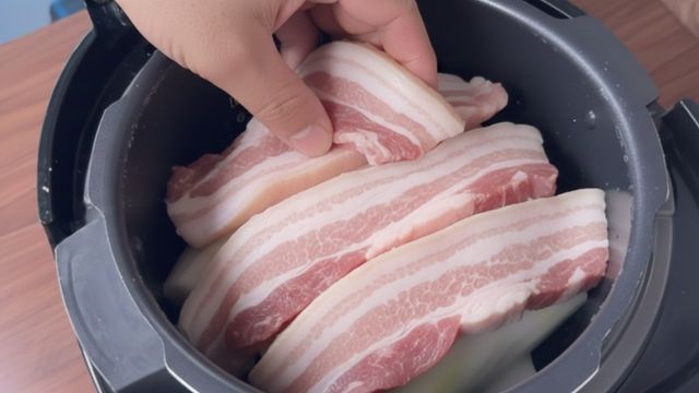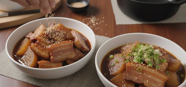 삼겹살과 무로 만드는 밥솥 무조림 AI 이미지