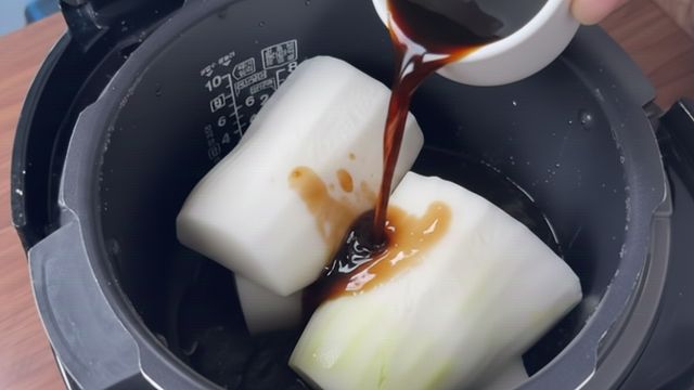 준비한 무를 밥솥에 담고 물 1컵을 부은 뒤 간장 3큰술, 맛술과 미림을 각각 2큰술씩 넣는다. 설탕을 약간 뿌린 후 삼겹살이나 앞다리살 같은 돼지고기를 함께 넣는다. 밥솥 뚜껑을 닫고 만능찜 모드로 약 1시간 동안 조리하면 된다. 만능찜 기능이 없는 밥솥이라면 일반 취사 버튼으로 조리 시간만 맞춰주면 된다. 멸치나 다시마 육수, 참치캔을 추가하면 감칠맛이 더욱 살아난다.