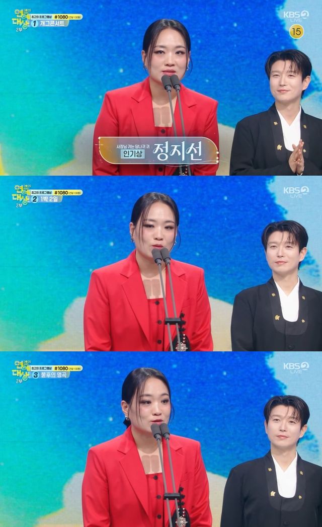 (엑스포츠뉴스 정민경 기자) '2025 KBS 연예대상' 정지선이 인기상 수상 소감에서 뇌종양 투병 중인 동생을 언급했다.