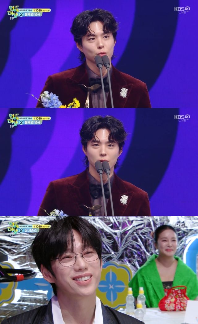 이에 MC 이찬원은 "박보검 씨가 수상소감을 7분 말씀하셨는데, 참다 참다 드디어 음악을 트셨다"고 덧붙여 유쾌함을 더했다.