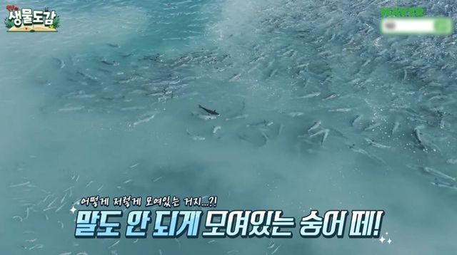 모여있는 숭어 떼 모습. 수가 어마어마하다. / 유튜브 'TV생물도감'