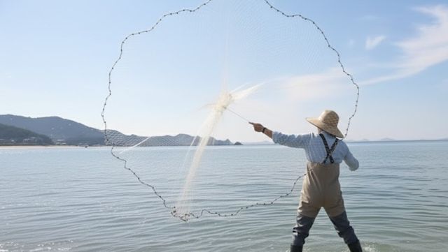 투망을 치는 사람. 기사 속 영상 장면을 바탕으로 AI가 재생성한 이미지.