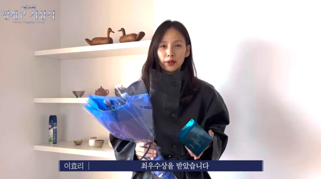 그러나 최우수상은 이효리의 이름이 호명됐다. 영상으로 등장한 이효리는 “최근 상을 받은게 없었는데 연말에 오랜만에 상받는 기분 느끼게 해주셔서 감사하다”며 “재석이 오빠 만나서 이런저런 편안한 이야기 나누고, 홍현희 제이쓴 부부와 즐거운 시간을 보냈다. 이렇게 상까지 주셔서 정말 감사하다”고 소감을 밝혔다.