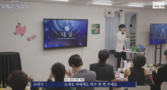 유재석이 이끄는 웹예능 ‘핑계고’ 시상식에서 이효리가 최우수상을 받았다. 이가운데 활동을 중단한 조세호가 편집없이 등장해 눈길을 끌었다.