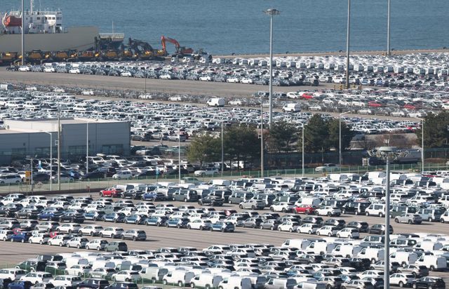 4일 경기 평택시 포승읍 평택항에 수출용 차량이 세워져 있다. 한국산 자동차 관세를 15%로 인하하는 내용이 3일(현지시간) 미국 정부 관보에 게재됐다. 이 관보는 현지시간으로 4일 공식 게재돼 발효되며 인하 조치는 2025년 11월 1일 이후 수입 건부터 소급 적용된다. 2025.12.4/뉴스1
