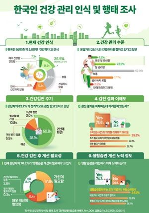 한국암웨이가 전국 성인 남녀 1,000명을 대상으로 실시한 ‘한국인 건강관리 인식 및 행태 조사’ 결과, 응답자의 35.5%만이 “스스로 건강하다”고 인식하는 것으로 나타났다.