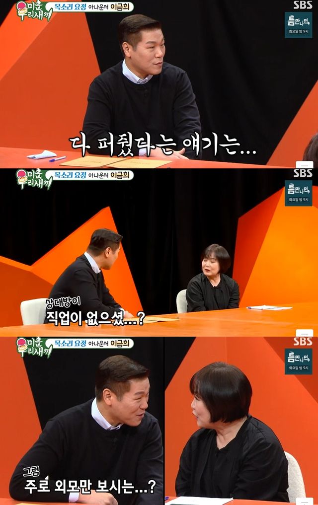 이 가운데 서장훈은 "다 퍼줬다는 말은, 그 당시에는 남자분이 직업이 없었다는 거냐"며 날카로운 질문을 던졌고, 이에 이금희는 "만나다보니 제가 좋아했던 남자친구는 직업이 없기도 했고, 차가 없기도 했다. 많이 가진 남자는 별로 만나 본 적이 없다"고 답했다.