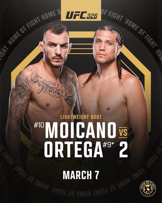 매체에 따르면 해당 대회의 메인 이벤트는 맥스 할로웨이와 찰스 올리베이라의 BMF 타이틀전으로 예정돼 있으며, 오르테가와 모이카노의 맞대결은 라이트급 주요 매치업 중 하나로 공식 발표됐다.