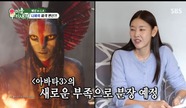 이날 한혜진은 미국 LA에서 영화 ‘아바타’에 출연하는 배우 우니 채플린, 조 샐다나, 시고니 위버의 인터뷰를 준비하며 ‘아바타’ 분장에 나섰다.