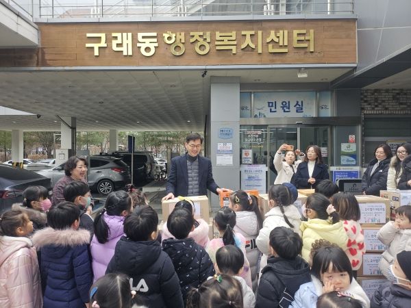 지난 12월 12일, 김포 구래동 주민센터에서 열린 기탁식에는 형님반인 7세 꽃피는반 어린이들과 담임 강민정 교사, 김명선 원장이 함께했다. 아이들은 직접 모은 라면이 차곡차곡 쌓인 모습을 바라보며 자신들이 참여한 나눔의 결과를 눈으로 확인했다. 구래동장의 감사 인사와 따뜻한 환대는 아이들에게 ‘나눔이 누군가에게 기쁨이 된다’는 사실을 자연스럽게 전해주는 순간이었다. 김명선 원장은 “아이들이 어릴 때부터 나눔을 특별한 일이 아닌 일상의 한 부분으로 받아들이길 바라는 마음으로 이번 행사를 준비했다”라며 “작은 실천이지만 아이들 마음속에 이웃을 생각하는 따뜻한 기억으로 남기를 바란다”라고 전했다.