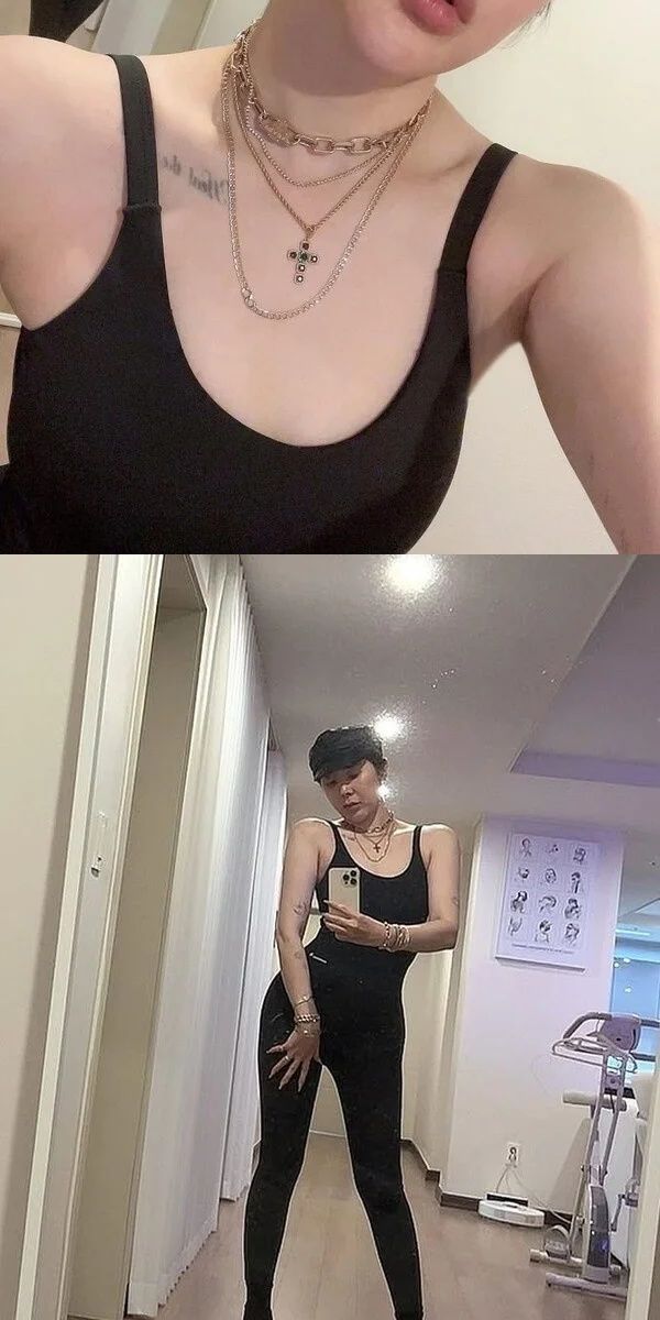 공개된 사진 속 서인영은 블랙 민소매 의상에 모자를 매치한 채 전신 거울 앞에서 포즈를 취하고 있다.