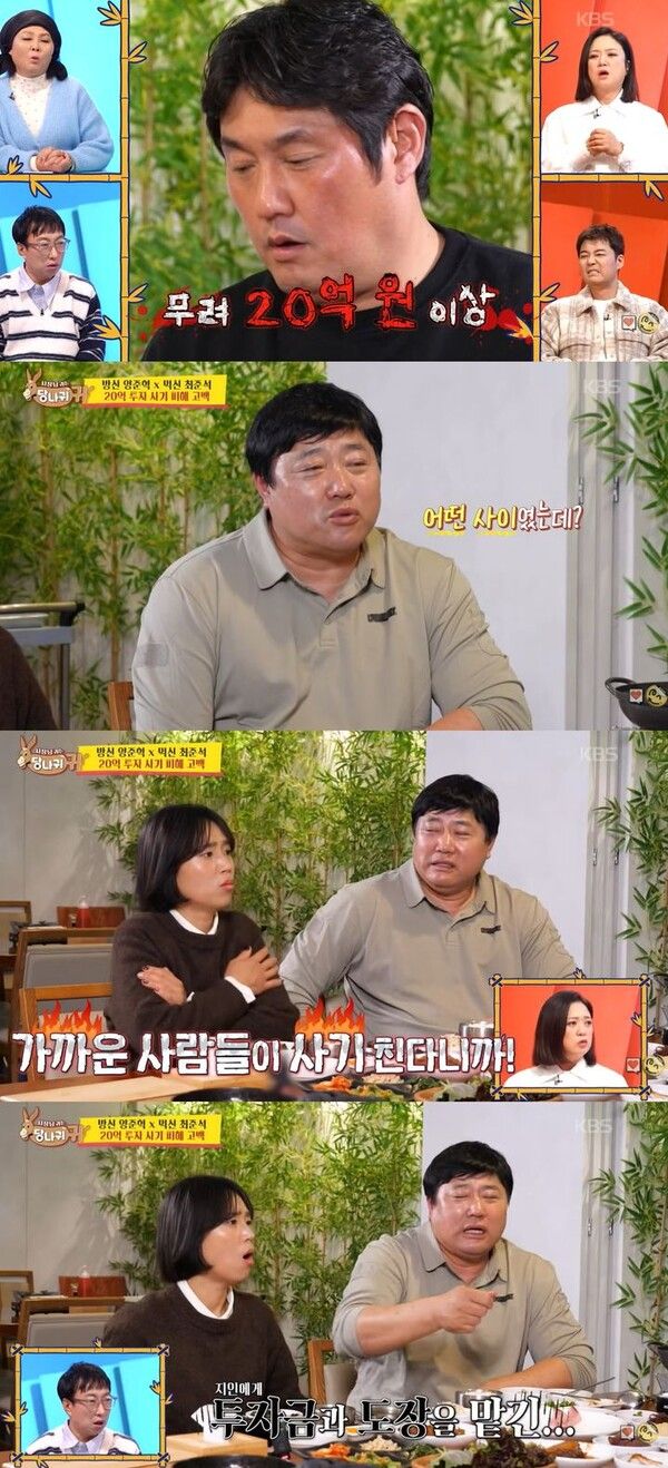 이날 최준석은 "정말 친한 사람에게 건물 투자해서 사기를 맞았다"며 "금액대가 20억이 넘어간다"고 말했다.