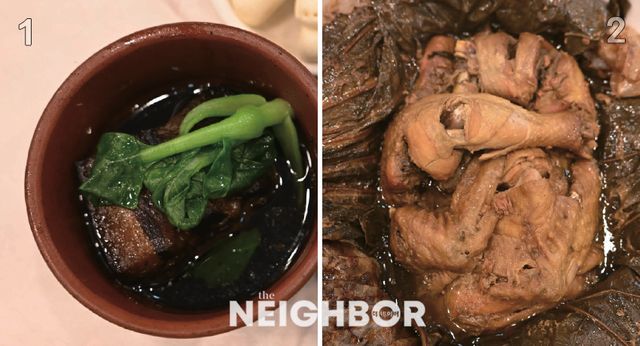 거지닭 역시 항저우의 대표 요리다. 거지닭은 독특한 이름에서 알 수 있듯 전설 같은 이야기가 전해지는데, 17세기 청나라 시절 항저우의 거지가 배고픔을 견디지 못하고 닭 한 마리를 훔쳤으나 조리할 도구가 없어 연잎으로 감싸고 진흙으로 덮어 불 속에 넣고 익혀 먹었다는 것이다. 러우와이러우에서는 전통 방식 그대로의 거지닭을 먹을 수 있는데 우선 진흙 속 여러 겹으로 싼 연잎을 풀어 내어준다. 닭기름과 버섯 향이 더해져 향기로운 자연의 냄새가 퍼져 나온다. 매우 부드러운 살코기는 젓가락을 대기만 해도 육즙이 흘러나오고 부드럽게 풀린다. 인공적인 간은 거의 없이 은은한 단맛과 연잎의 향으로 즐거운 여운이 오래 지속된다. 배어 나온 육즙은 맑고 깊다.