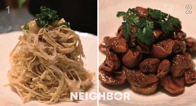 1 장천목산 죽순, 파, 참기름, 고추기름.