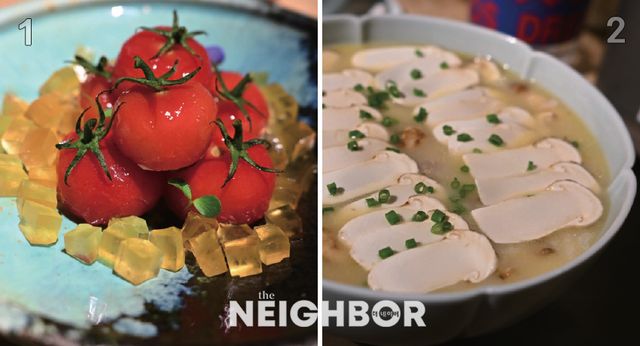 항저우는 미식의 도시답게 지역 전통 음식을 현대적으로 풀어내고 있는데 아만파윤(Amanfayun) 호텔 내에 위치한 ‘항저우 하우스(Hangzhou House)’와 포시즌스 호텔 내 위치한 ‘진샤(Jin Sha)’가 대표적이다. 차를 재배하는 전통 마을 전체를 리조트로 재탄생시킨 아만파윤은 녹차밭 한가운데 자리해 전통 가옥과 돌길, 대나무 숲길을 그대로 보존하고 있어 서정적이고 자연 친화적이다. 항저우 하우스의 시그너처 메뉴인 방울토마토 요리는 산뜻한 스타터로, 신맛과 토마토젤리의 단맛, 속을 채운 히코리너트의 맛이 절묘하게 조화를 이룬다. 송판육은 식초소스를 입힌 다진 양고기가 피스타치오와 함께 입안에 고소하게 녹아내렸다. 버섯을 곁들인 찜닭은 송이버섯, 흑목이, 동충하초, 백합버섯 등 여러 버섯들이 닭의 담백한 감칠맛과 어우러져 맑으면서도 깊은 맛이 층층이 퍼졌다. 금침화 볶음은 고추, 죽순과 함께 나왔는데 탱글한 식감과 씹을수록 연한 단맛 뒤의 산뜻한 고소함이 혀끝을 간지럽혔다. 완벽한 익힘에서 오는 청량한 식감과 은은한 단맛의 여운이 길게 피어났다.