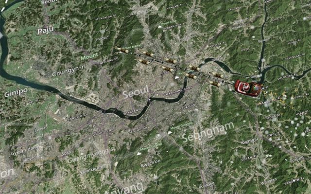 산타가 서울 상공을 지나는 모습. / NORAD 홈페이지
