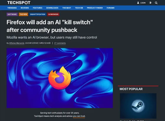 파이어폭스는 다른 웹 브라우저처럼 AI 기능을 강화하는 방향으로 업데이트를 진행하는 중이다.