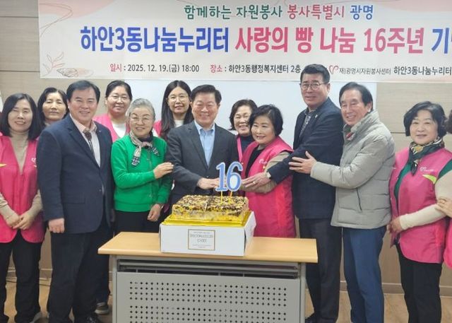 [와이뉴스] 광명시 하안3동 나눔누리터는 광명시자원봉사센터, 하안3동 행정복지센터와 함께 지난 19일 하안3동 행정복지센터 2층 회의실에서 ‘사랑의 빵 나눔’ 16주년 기념식을 개최했다.
