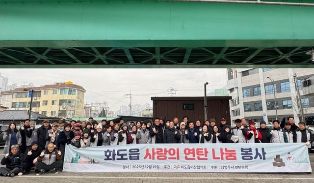 이날 봉사 활동에는 유형식 화도수동행정복지센터장을 비롯한 화도읍 소속 공무원 및 화도읍 이장협의회 소속 60여 명의 이장이 함께했다. 참여자들은 남양주시 연탄 은행(대표 최정모)에서 후원한 총 1,800장의 연탄을 화도읍 관내 4가구에 직접 전달하며 훈훈한 사랑의 마음을 전했다.