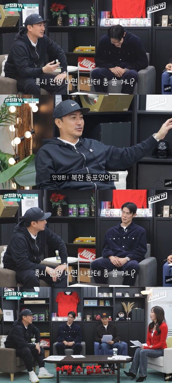 안정환은 시간이 지난 뒤 다시 "너 전쟁 나면 형한테 또 총 쏠 거야?"라고 물었더니 "에이 이제 안 쏘죠"라는 답이 돌아왔다고 전했다.