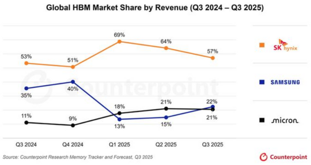 HBM 시장 점유율 추이. ⓒ 카운터포인트리서치