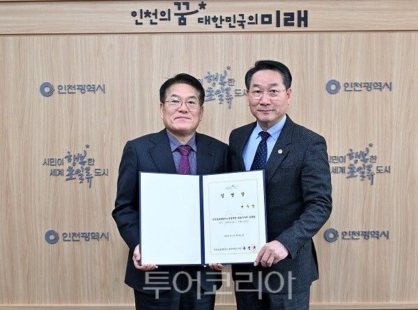 [투어코리아=이창호 기자] 유정복 인천광역시장이 22일 시청 접견실에서 변주영 인천글로벌캠퍼스운영재단 대표이사에게 임명장을 수여하고 있다