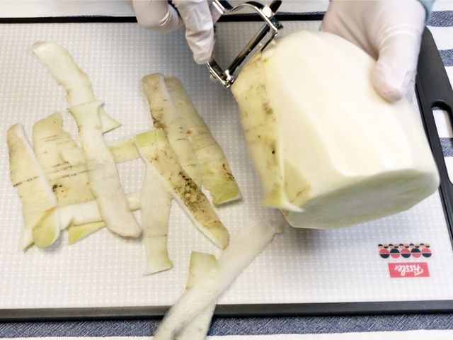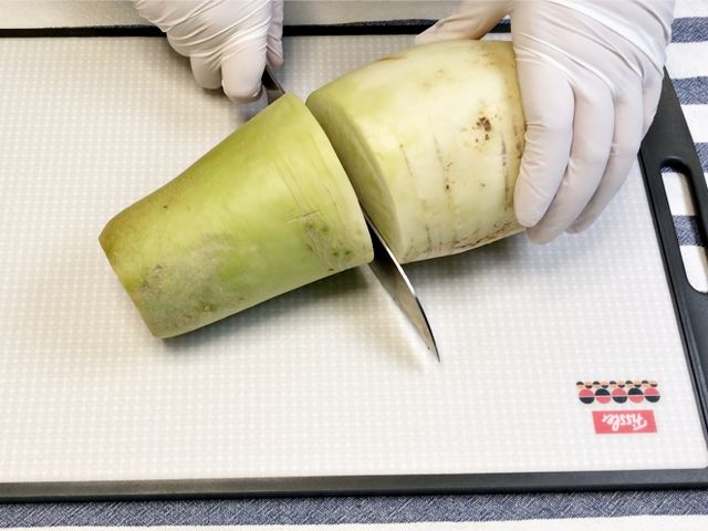이미 무청을 떼어낸 무라면 꼭지 부분을 조금만 잘라내 주세요.