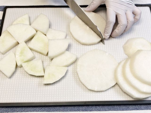 무를 먹기 좋게 썰어서 손질해주시고요.