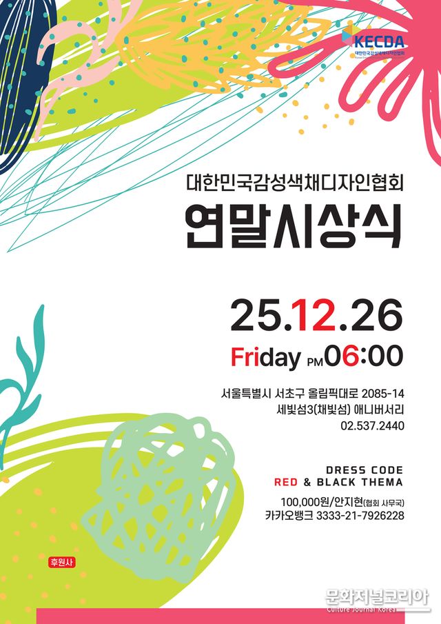 한편, '2025 대한민국감성색채디자인협회 연말시상식'은 사전 신청을 통해 참석할 수 있으며, 본지 문화연예부 오형석 기자는 특별 초청됐다.