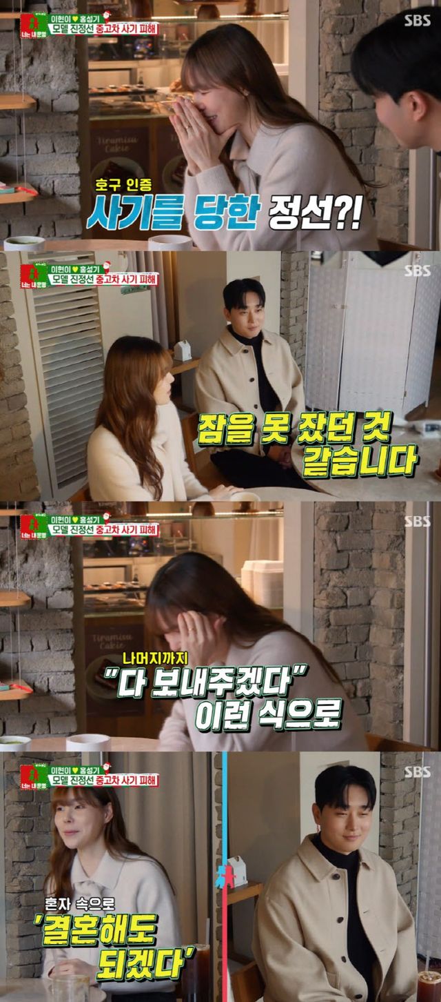 진정선은 “3자 사기를 당했다. 사기꾼이 중간에서 저한테는 차를 산다고 하고 구매자한테는 차를 판다고 했다”며 “제 차 정보를 가져갔을 거 아니냐. 그 정보를 중고 거래 플랫폼에 자기 차인 것처럼 올렸다”고 말했다.