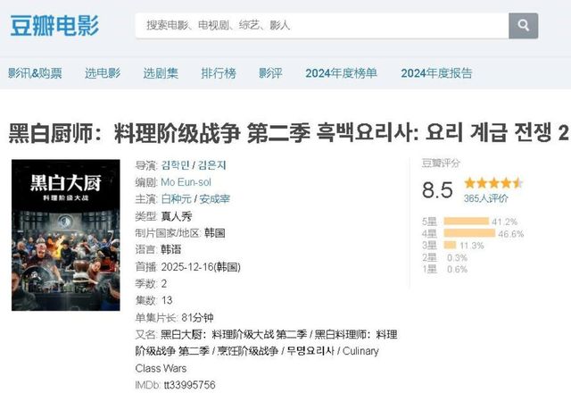 이어 "중국 최대 리뷰 사이트 더우반에는 '흑백요리사2'에 관한 리뷰 페이지가 이미 만들어졌고, 23일 오전 기준으로 리뷰가 70여 건, 별점 평가에는 370여 명이 참여했다"며 "현재 중국에선 넷플릭스가 공식적으로 서비스되지 않기에 '흑백요리사2'를 또 불법시청 한 후 리뷰를 남긴 것으로 보인다"고 주장했다.