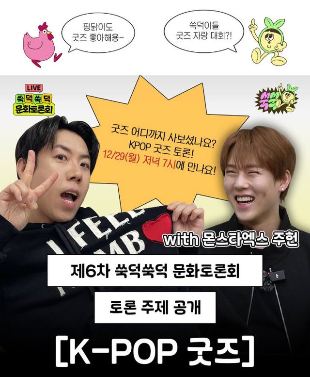 주헌은 오는 29일 오후 7시 유튜브 채널 ‘쑥쑥’에서 진행되는 ‘제6차 쑥쑥쑥쑥 문화토론회’에 출연한다. 이번 라이브는 ‘K팝 굿즈’를 주제로 팬들의 ‘덕질’ 문화 전반을 조명한다. 양세찬이 진행하는 가운데 주헌은 메인 게스트로 출연해 굿즈 문화에 대해 이야기를 나눌 예정이다.