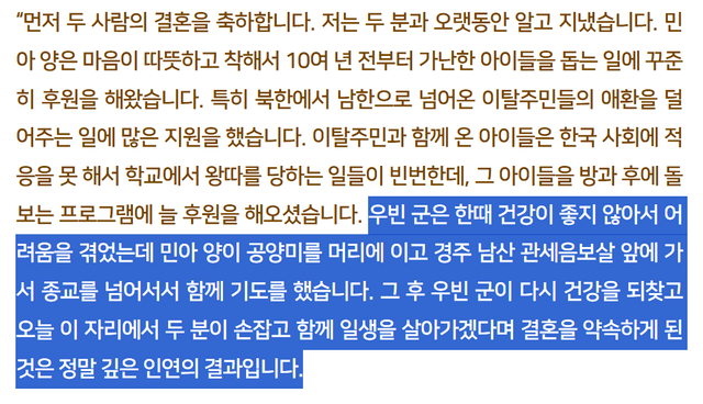 김우빈 신민아 부부는 결혼식 당일 소외계층에 3억원 기부를 했다.