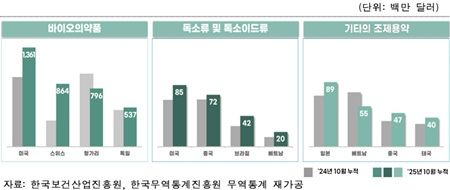(그래프)의약품주요품목수출액변화(2025년10월누적)