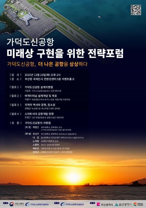 [와이뉴스] 국토교통부와 가덕도신공항건설공단은 12월 23일, 부산항 국제전시 컨벤션센터(BPEX)에서 '가덕도신공항 미래상 구현을 위한 전략 포럼' (부제: 가덕도신공항, 더 나은 공항을 상상하다)을 개최한다.