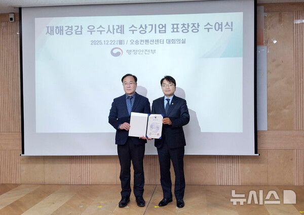 한국중부발전은 지난 22일 행정안전부가 주관하고 기업재해경감협회가 주최한 '2025년도 재해경감 우수사례 경진대회'에서 최우수상(행정안전부 장관상)을 수상했다고 23일 밝혔다.