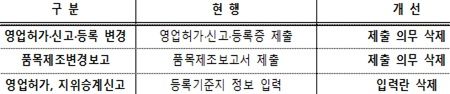 영업자는 영업허가·신고·등록사항 또는 품목제조보고사항 등을 변경 신청할 경우 영업허가증·신고증·등록증 또는 품목제조보고서 등을 첨부해야 하는 불편이 있었다.