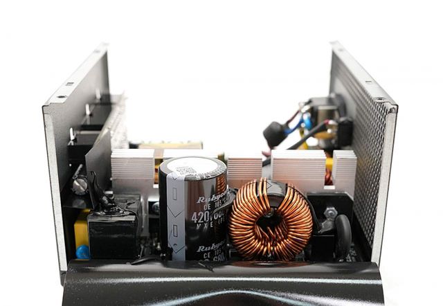 ETA GOLD 효율을 달성한 파워 서플라이라면 의당 그만큼 탄탄한 내부구조를 가졌을 것임은 익히 예상할 수 있는 일이다. 그 시작은 한국 소비자가 가장 선호하는 최고급 일본산 캐패시터를 입력단에 적용하는 것부터 시작된다. 105도의 충분한 내압, 높은 효율을 위한 400V 승압에도 능히 버틸 수 있도록 420V 캐패시터를 적용했다. 굳이 캐패시터에 대해서 더이상 설명할 게 있을까? 사실상 최고 수준이다. 그리고 동 등급의 파워라면 의당 갖추어야 할 기본 중의 기본이다.