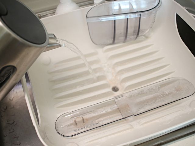 따뜻한 물을 한번 더 부어서 확실하게 씻어내 주시고요.