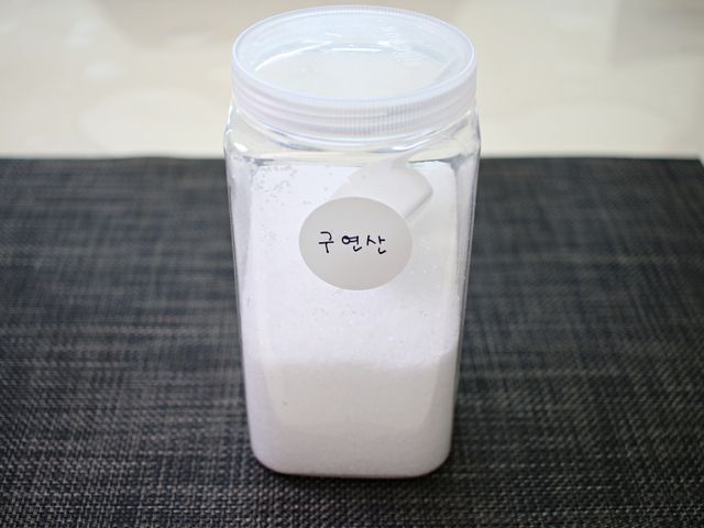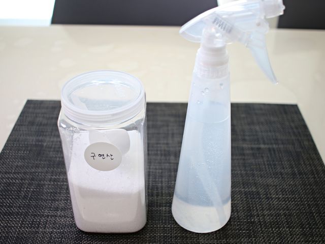 미지근한 물 1리터에 구연산을 듬뿍 한큰술 넣어 잘 녹여주면