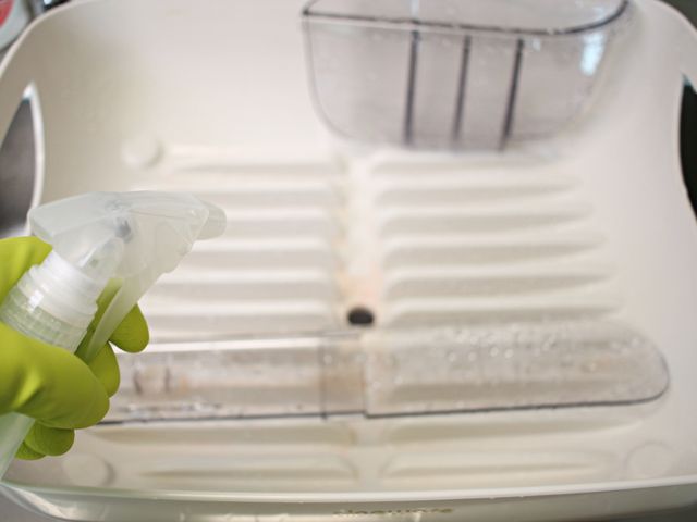 준비한 구연산수를 건조대 전체에 골고루 뿌려주세요.